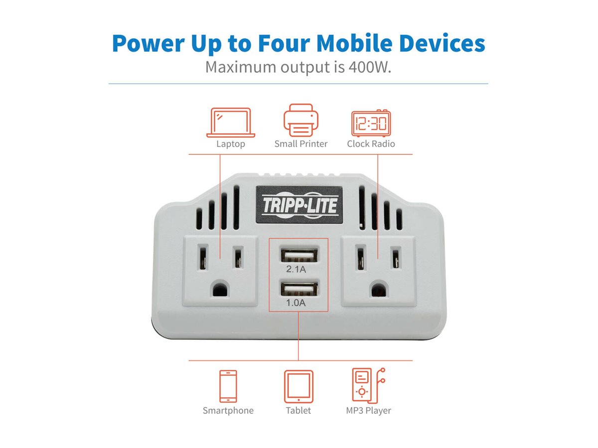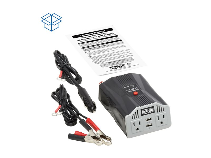 | Product Description | Eaton Tripp Lite Series Ultra-Compact Car Inverter 400W 12V DC to 120V AC 2 UBS Charging Ports 2 Outlets - DC to AC power inverter + battery charger - 400 Watt |