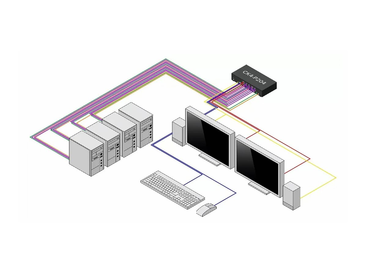 | Interfaces | 8 x DisplayPort input female ¦ 4 x keyboard / mouse Type B ¦ 4 x audio input phone stereo 3.5 mm female ¦ 2 x DisplayPort output ¦ 2 x USB output Type A ¦ 1 x audio output phone stereo 3.5 mm |