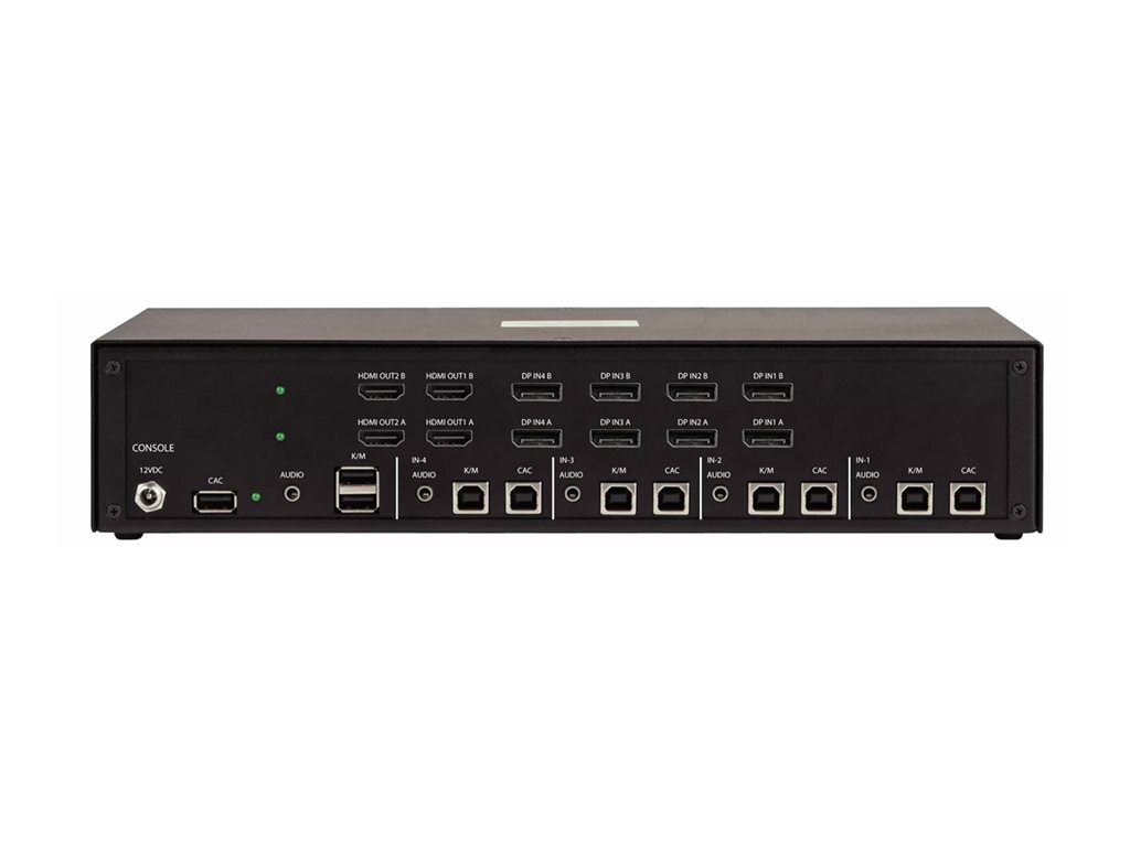 | Interfaces | 8 x DisplayPort input female ¦ 4 x USB input Type B common access card (CAC) ¦ 4 x keyboard / mouse Type B ¦ 4 x audio input phone stereo 3.5 mm female ¦ 4 x HDMI output ¦ 2 x USB output Type A ¦ 1 x audio output phone stereo 3.5 mm ¦ 1 x USB output common access card (CAC), for user |